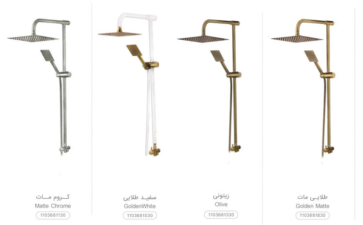 شامل شیرهای دوش با علمکهای متحرک و ثابت، و شیرهای آفتابه.